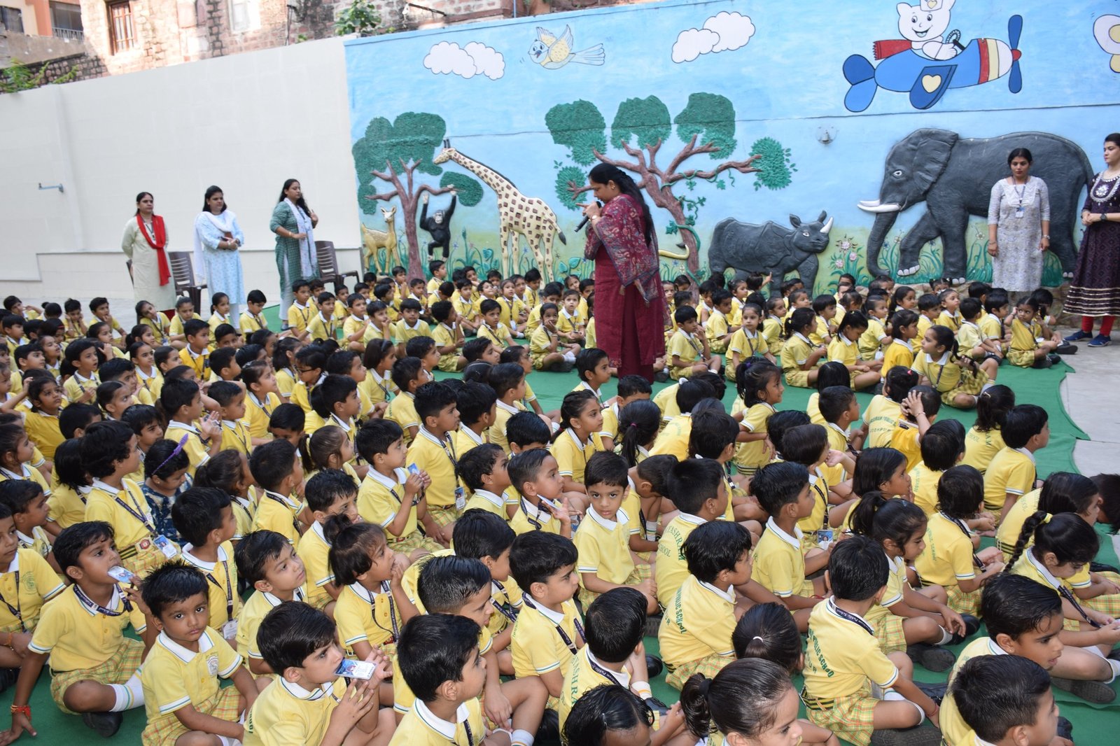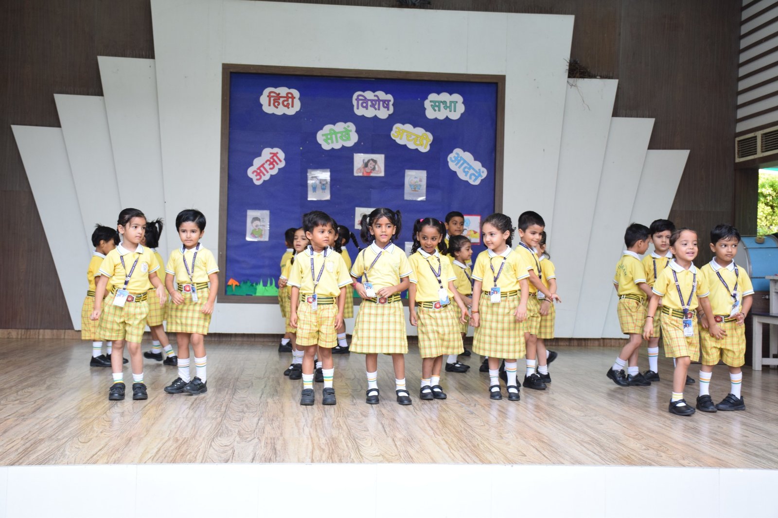 "A special assembly organized by LKG children and Hindi teachers featured an inspiring presentation on good habits. The children shared their thoughts on the importance of good habits in life, and at the end, everyone performed a wonderful dance to the song 'Acchi Aaadatein.' It was a very beautiful and educational assembly."